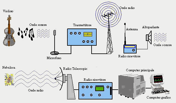 Figura 2 Schematica rappresentazione dell'emissione e ricezione di onde radio