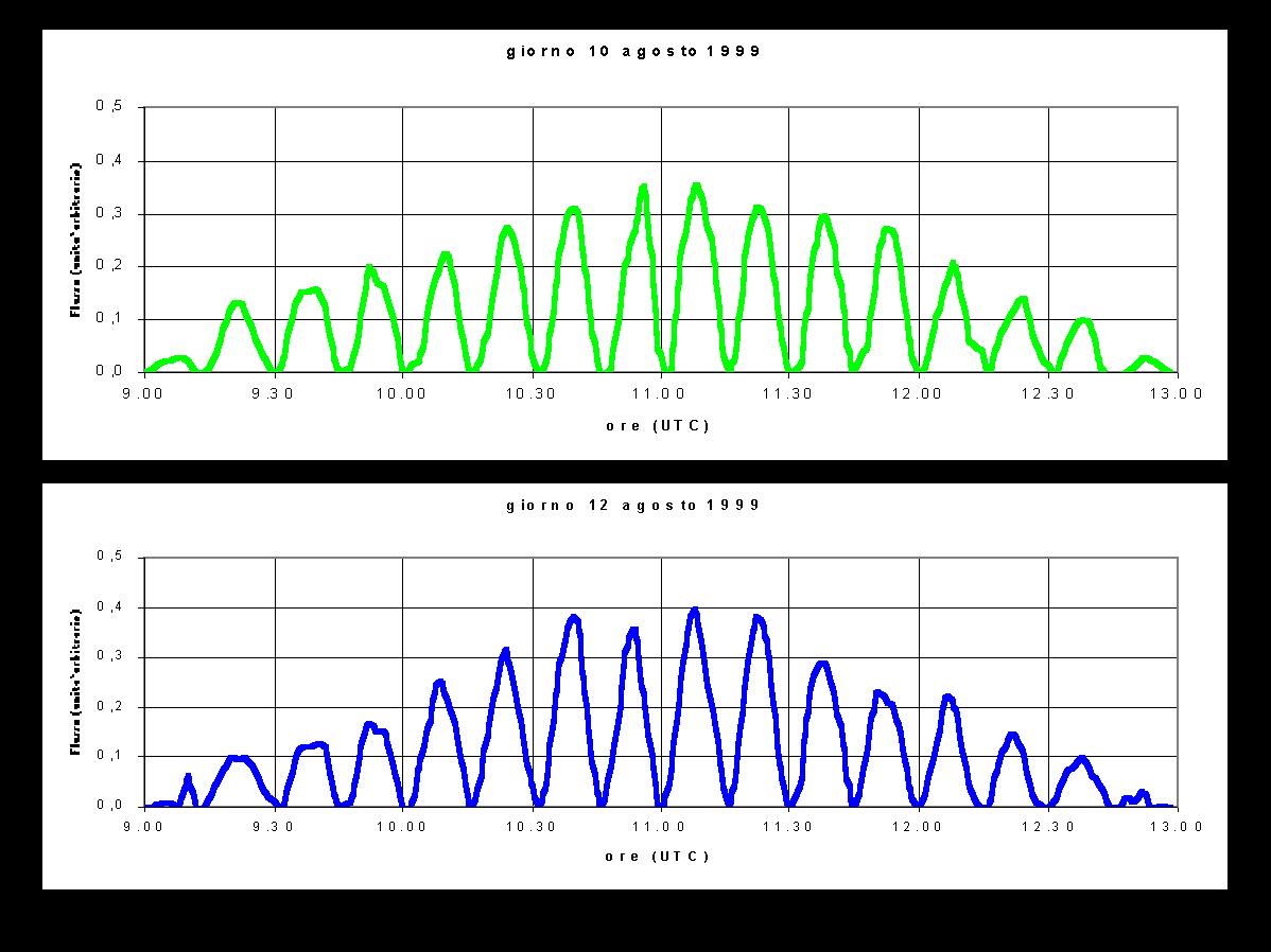 Figura 20 Risultati ottenuti a Remanzacco dalle misure eseguite durante l'eclisse di sole del 1999