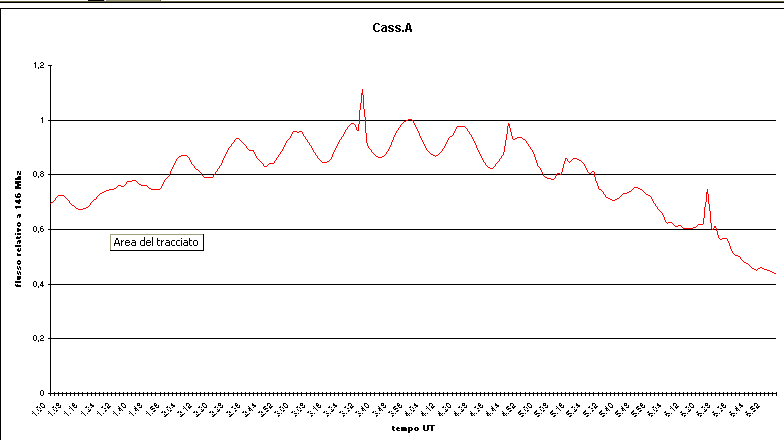 Figura 29 Esplosione solare registrata a Remanzacco con il radio telescopio a 20 MHz
