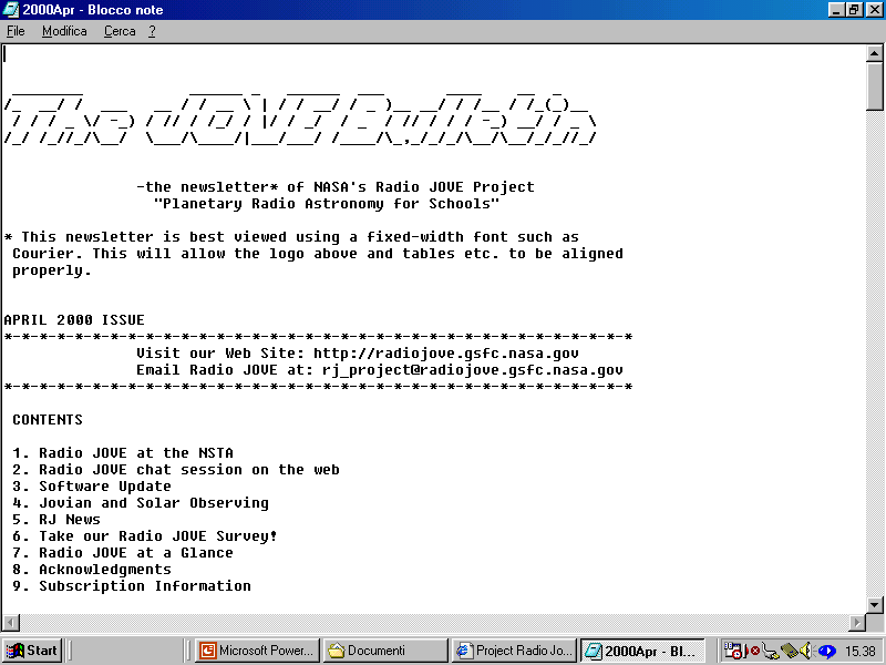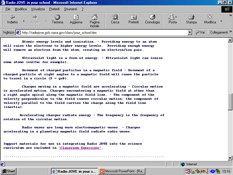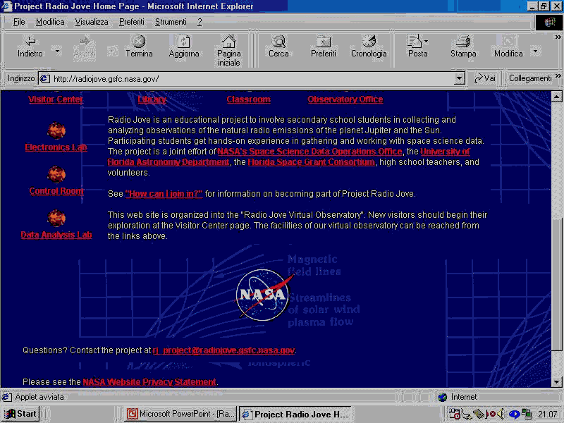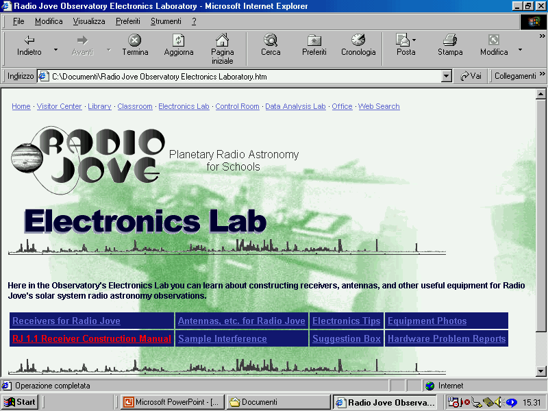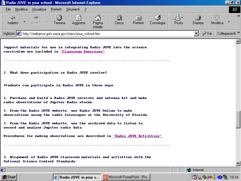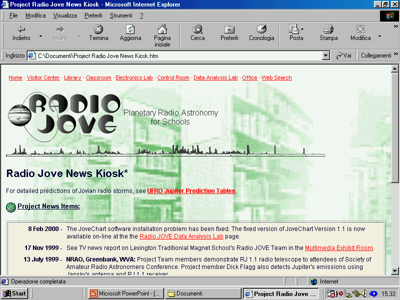 Figura 13 La partecipazione della Sezione di radioastronomia al progetto Radio Jove