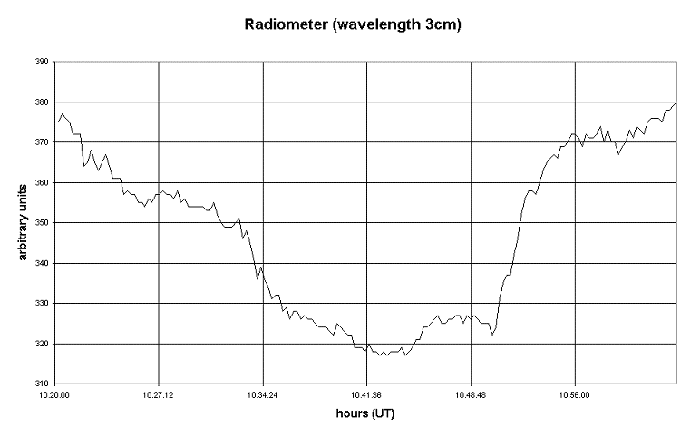 radiometro durante le fasi centrali dell'eclisse; sull'asse X c'è il