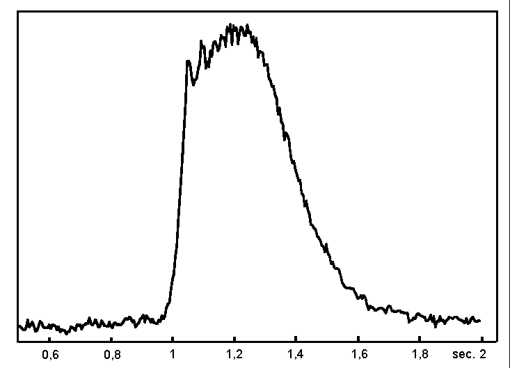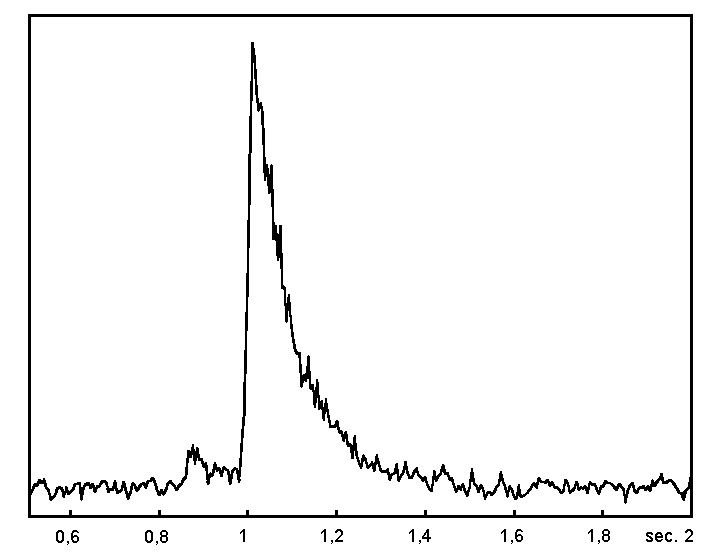 | La conformazione degli echi ricevuti, sono evidenziati nei grafici delle figure 4, 5, 6 del primo sistema di acquisizione e rappresentano le caratteristiche più importanti nella tipologia delle particelle meteoriche che entrando nell'atmosfera e vaporizzando a secondo della loro composizione e dimensione, lasciano come eco di riflessione. Queste si possono dividere in meteora ipodensa, meteora iperdensa corta e meteora iperdensa lunga. |
