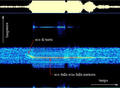 Spettrogramma dell'eco di testa di una meteora registrato con il radar meteorico dell'A.F.A.M. la sera del 12 agosto 2002